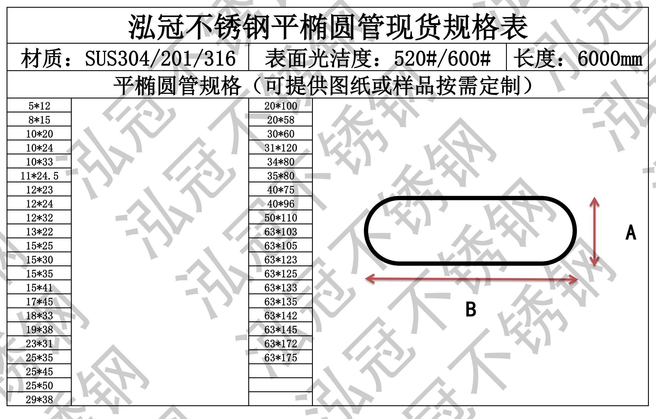 泓冠不銹鋼橢圓管現貨規格表